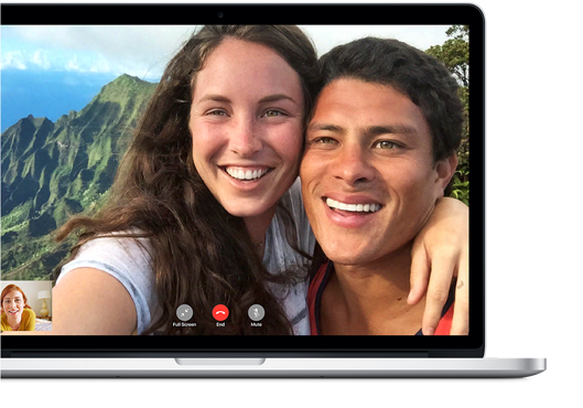你的 FaceTime 视频通话将可享受 HD 级别的待遇。现在,Mac 的 FaceTime 可支持高达 720p 的视频通话。你只需要一台内置 FaceTime HD 高清摄像头的 iMac、MacBook Pro 或 MacBook Air,你的通话画面即可呈现极度逼真的清晰效果。FaceTime HD 摄像头还支持宽屏幕 16:9 宽高比,因此妈妈、爸爸、奶奶、好友、甚至小狗都能围拢在一起,参与视频通话。