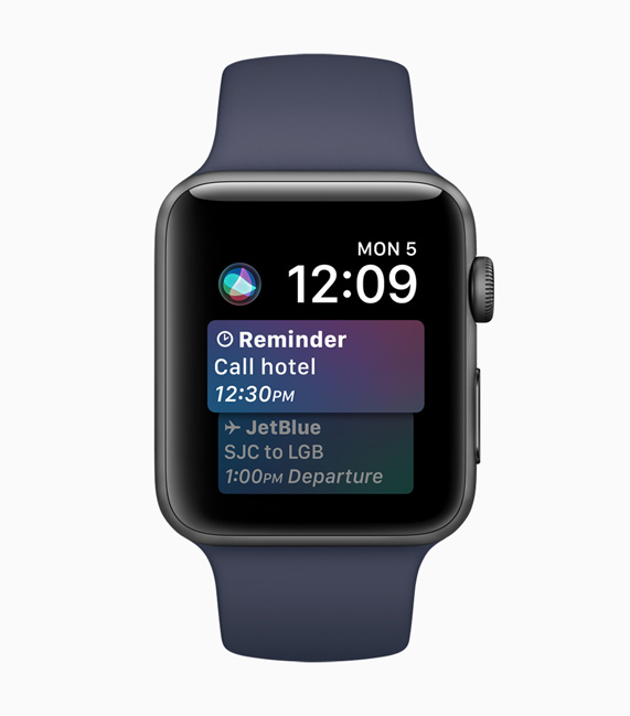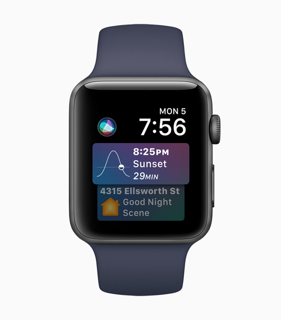 通过全新的 Siri 表盘,Siri 的智能功能在 Apple Watch 上得到进一步发挥。每次轻抬手腕,Apple Watch 都会根据用户每天的时间、日常习惯以及来自健身记录、闹钟、呼吸、日历、地图、提醒事项、Wallet 等 app 中的相关数据,来自动更新显示屏上的信息。