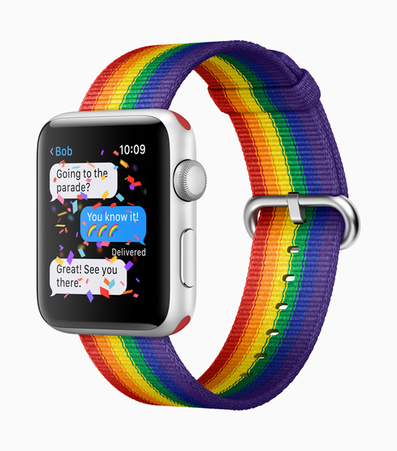 - 全新的彩虹版精织尼龙表带于今日起在 apple.com/cn 发售,并于本周晚些时候通过 Apple Store 零售店在美国和超过 35 个国家或地区发售,包括澳大利亚、巴西、加拿大、中国、法国、德国、香港、意大利、日本、荷兰、新加坡、韩国、西班牙、瑞典、瑞士、阿联酋、英国等。精织尼龙表带的售价为人民币 398 元。
