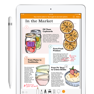 对 Apple Pencil 的支持让用户在 iPad 上的文档、电子表格和演示文稿中更充分地发挥创造力