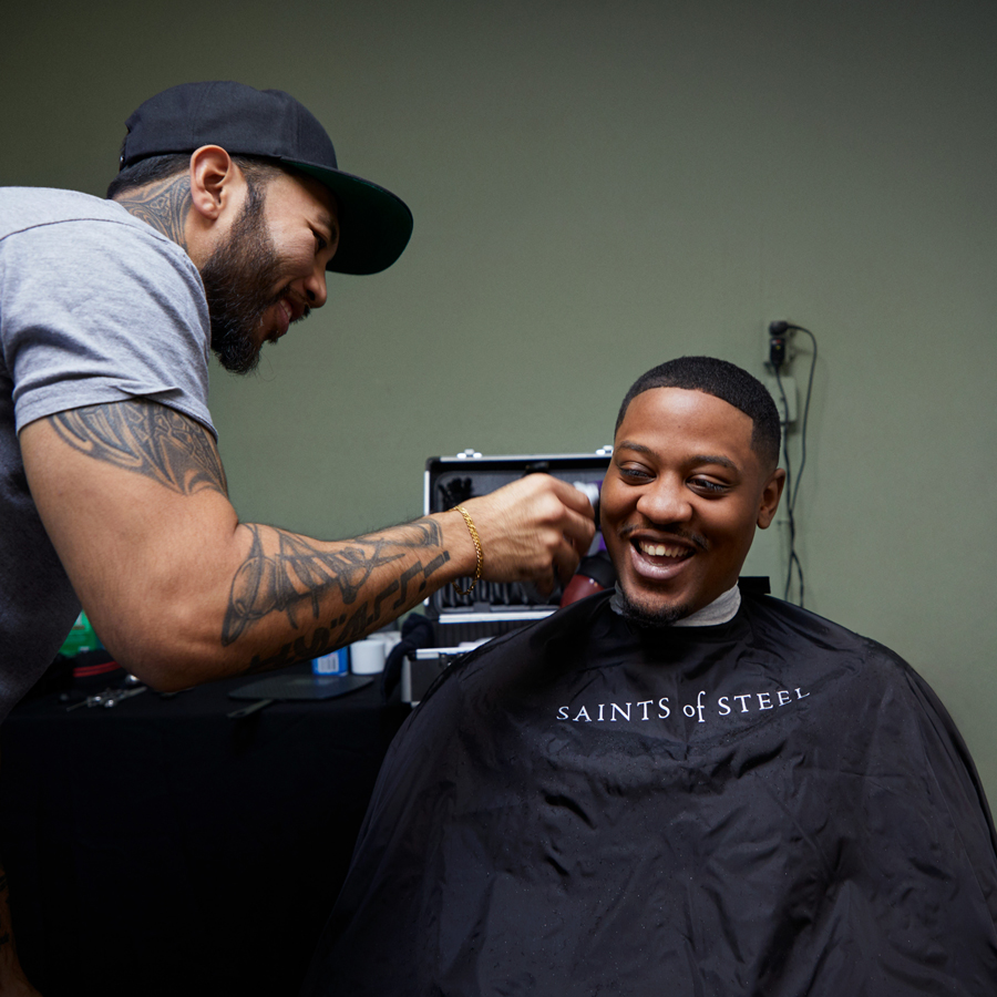 面对家庭的遭遇,Limos 感到自己必须肩负起回馈社区的使命。接下来的事为她实施这项方案铺平了道路:Saints of Steel 诞生了,这是一家非盈利游击理发店,帮助正在找工作、找住处和希望重新开始的人改变形象。