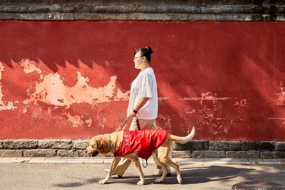上班前,周彤会在她的 iPhone 上搜索到包含地铁出口信息在内的详细通勤路线。通勤期间,她使用 AirPods Pro 的降噪模式接听电话和使用 Siri。当需要感知周围环境时,她会切换到通透模式。AirPods Pro的无线和可靠连接体验帮助她轻松出行。跟导盲犬散步的时候,她的双手得以解放出来,只需握好牵引绳而无需担心被耳机线缠住。