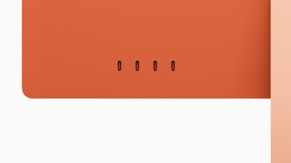 新款 iMac 提供 7 种生动色彩选项,包括清新亮丽的绿色、黄色、橙色、粉色、紫色、蓝色,以及银色。iMac 的背面色彩鲜艳醒目,正面则以更为含蓄的方式表达新配色,帮助用户专注投入眼前的工作。每一台 iMac 均配有同色系妙控键盘及妙控鼠标或可选妙控板,现全部配备 USB-C 端口,让用户可以使用一条充电线为所有常用设备充电。