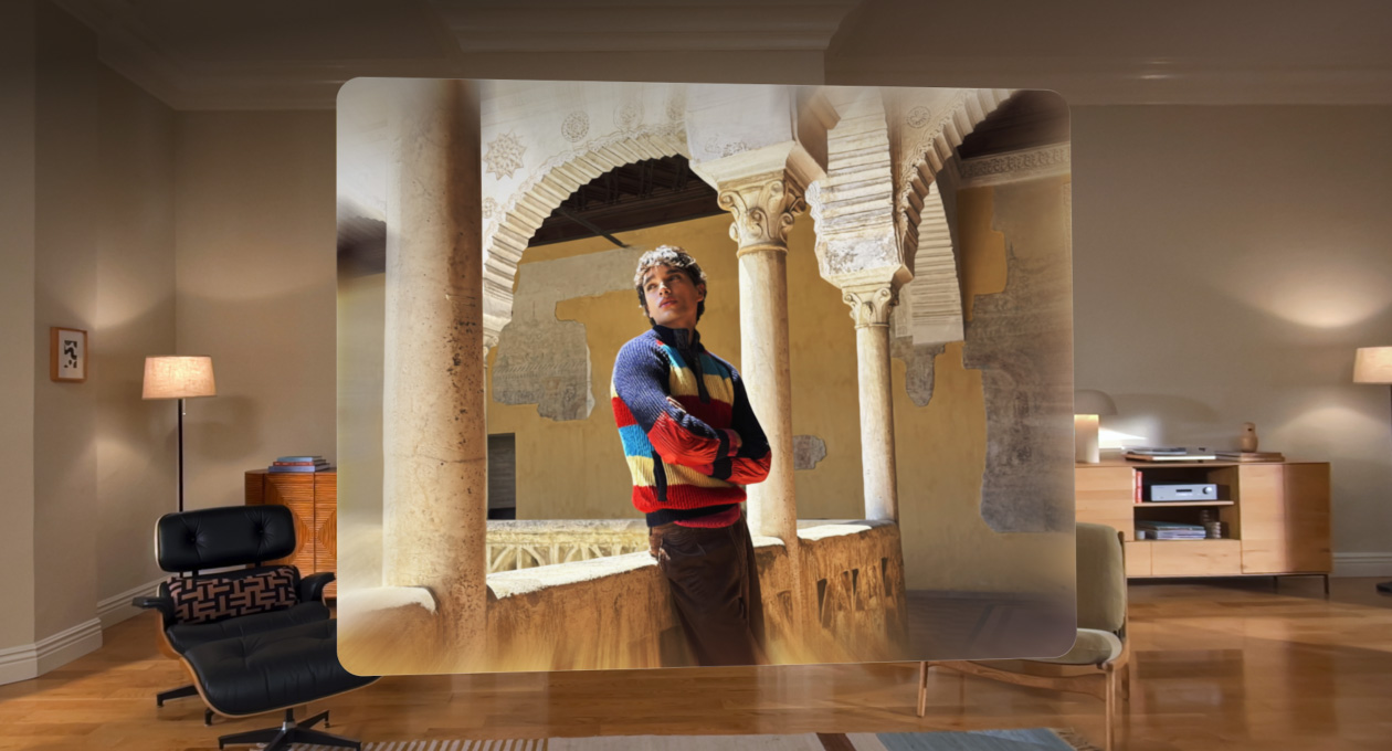 图像以“空间场景”生动呈现,营造逼真的立体纵深效果,带来栩栩如生的观感体验。你可在照片、Safari 浏览器中以空间场景进行浏览,第三方开发者也可以将其整合进自己的应用。