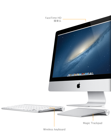 iMac 配备 Apple Wireless Keyboard 和 Magic Mouse。先进的 Multi-Touch 鼠标,带来整洁雅致的工作空间。